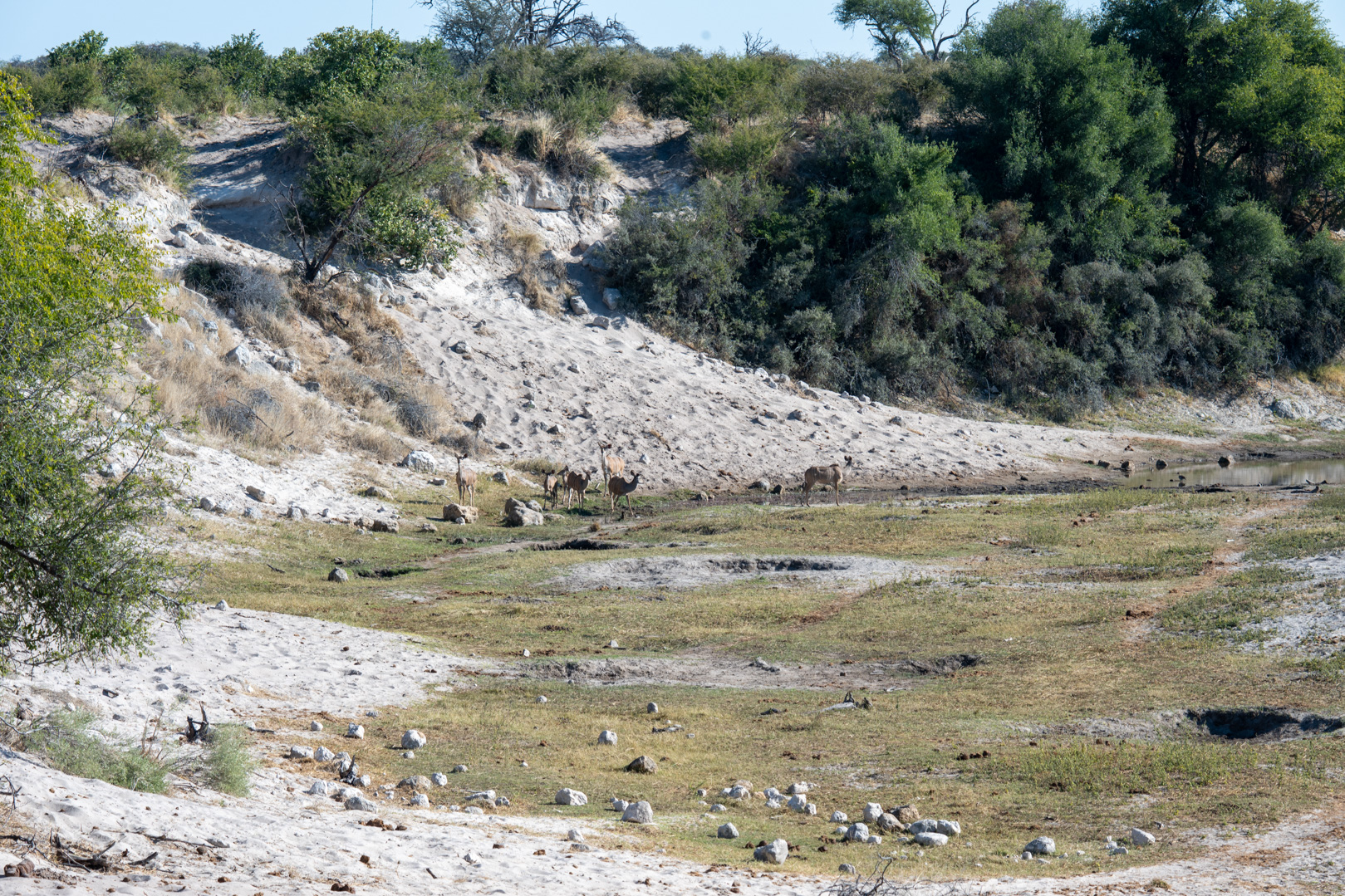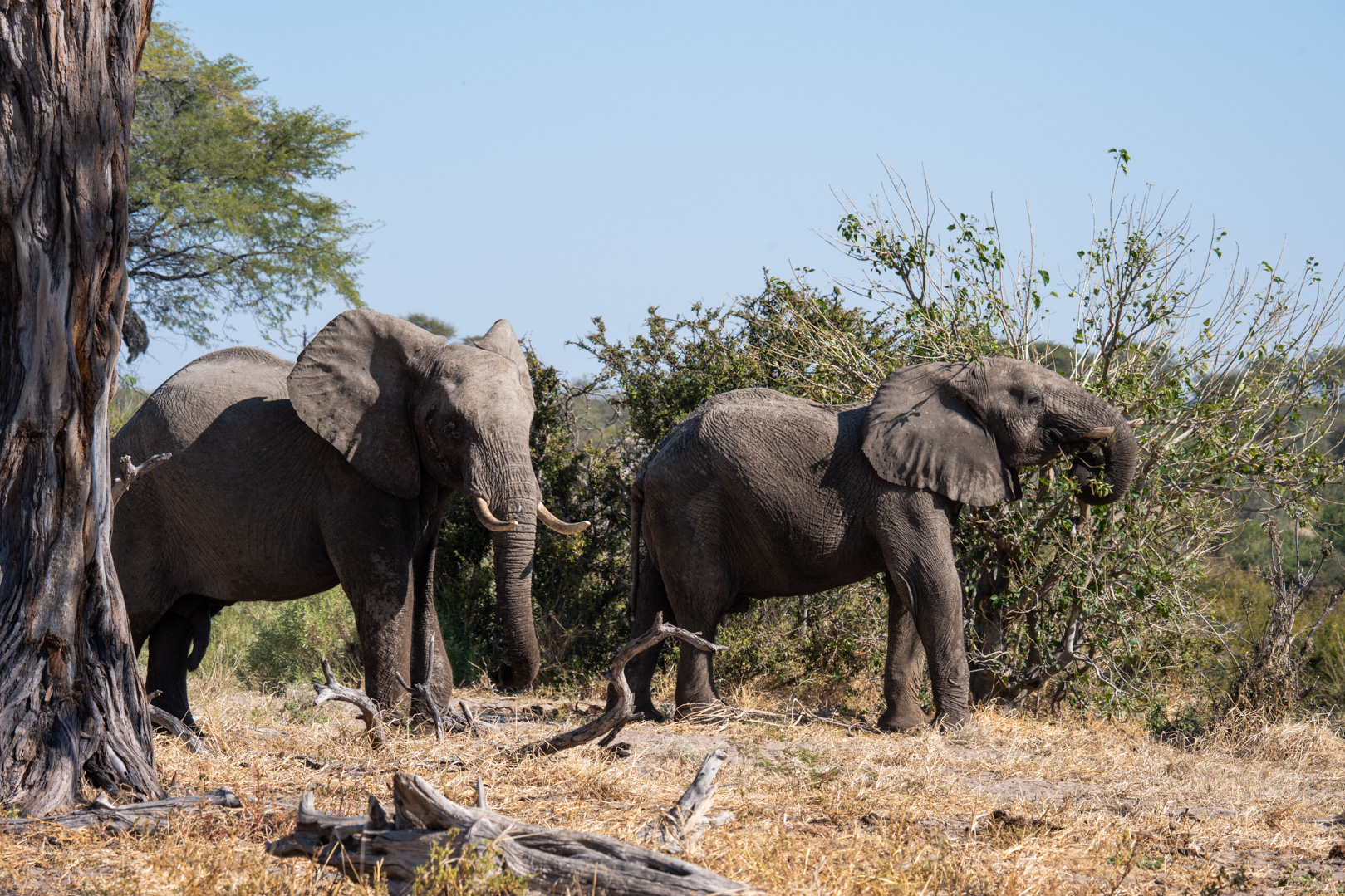 Zodra we de westkant van het park bereikten, veranderde alles. In de buurt van de Khumaga Gate en de Boteti-rivier kwam het landschap tot leven. Waar het oosten droog en leeg aanvoelde, was het hier groen, levendig en vol wildlife.