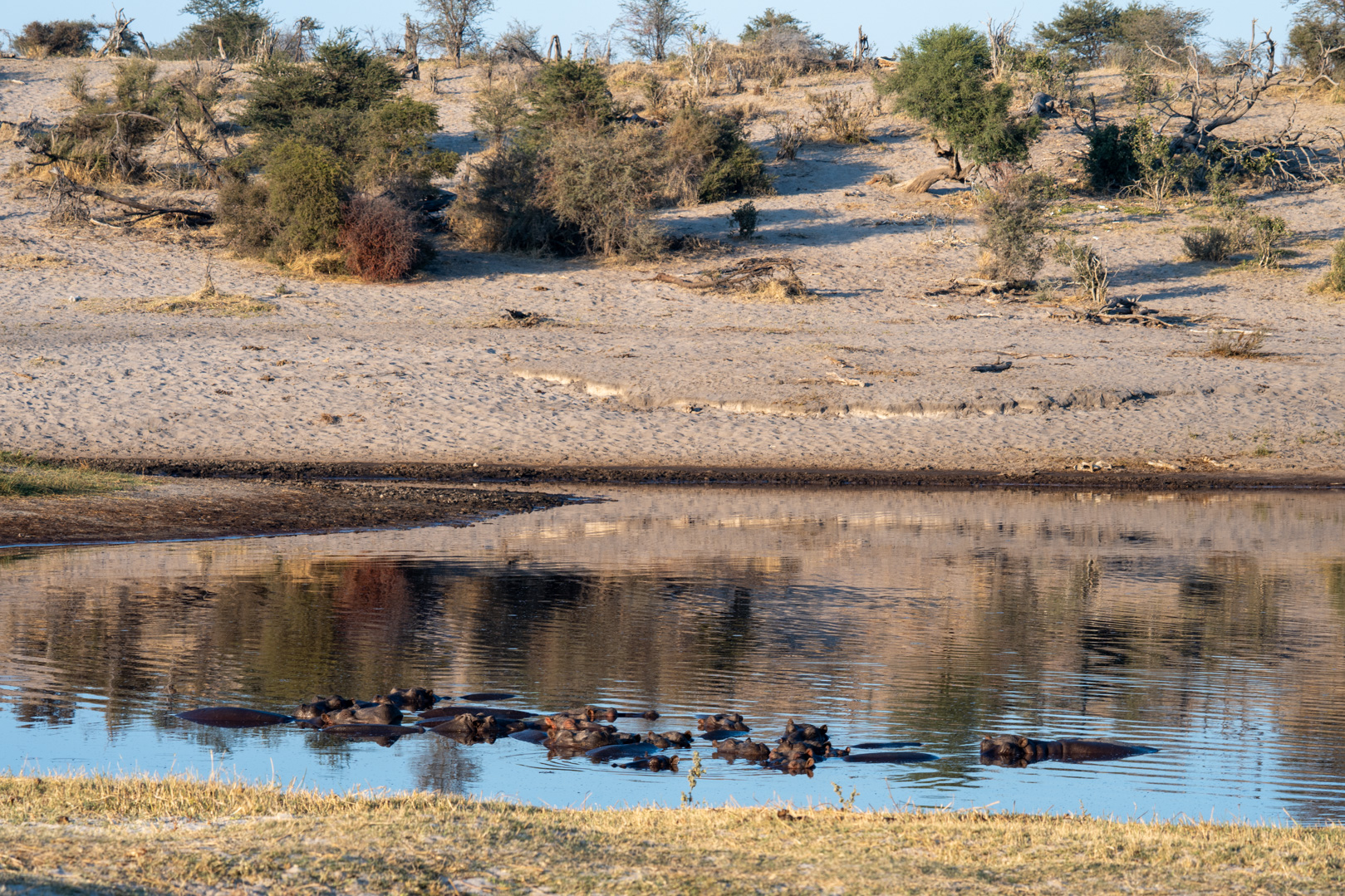 In de drogere periode, van juni tot en met oktober, verplaatst de actie zich naar het westen. Langs de Boteti-rivier verzamelen dieren zich rond het water, wat zorgt voor sterke wildlife-sightings zoals wij die bij Khumaga meemaakten.